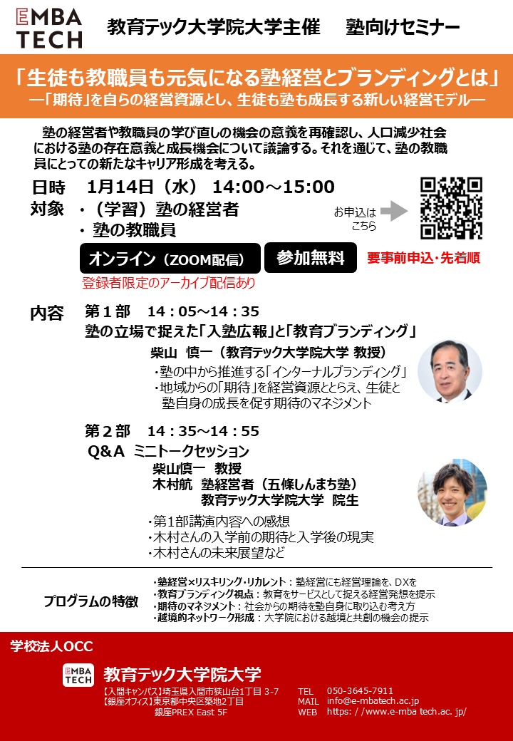 「生徒も教職員も元気になる塾経営とブランディングとは」塾の教職員向けセミナーを開催します