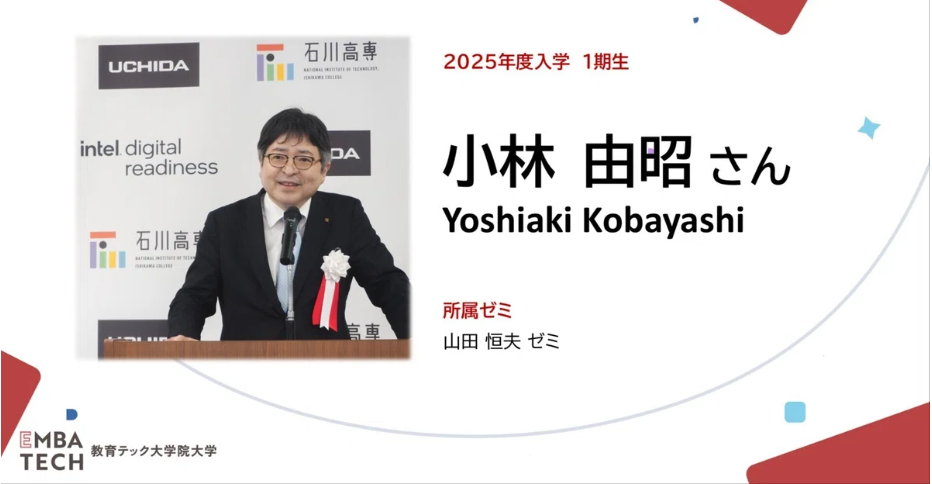「教育現場のテクノロジー活用の伴走者」として長年大学のICT導入と運用支援に携わってきた、 2025年入学1期生の小林 由昭さん。