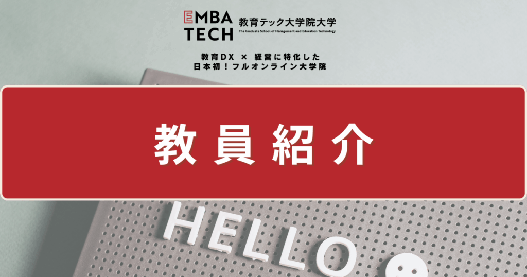 ここでは、各専門分野の先生方が揃った「教育テック大学院大学」の教員をご紹介します。