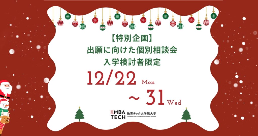 【特別企画】教育テック大学院大学 出願に向けた個別相談会(入学検討者限定)